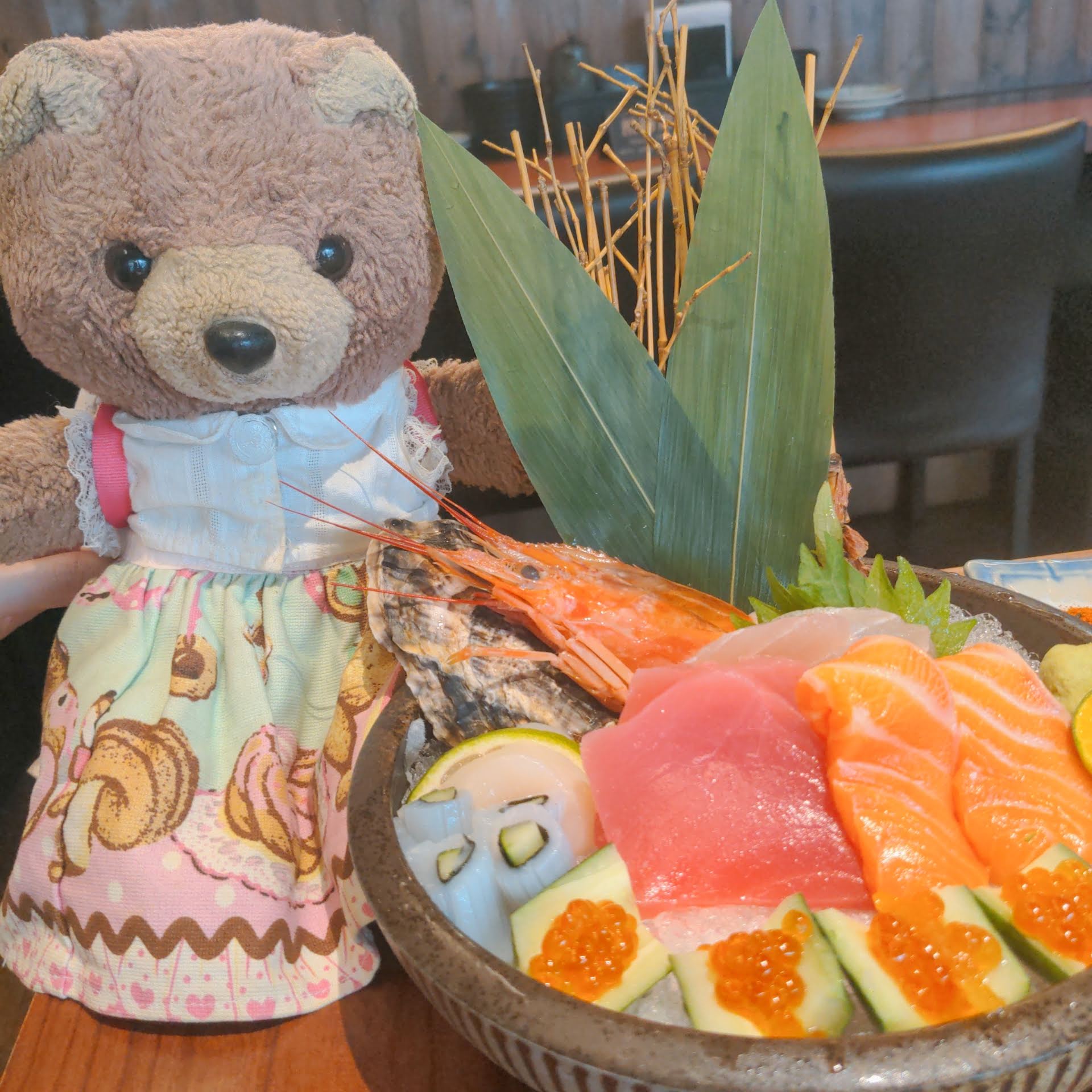We also got a bowl of sashimi which was decent. The shrimp was pretty nice! The oyster shell is decoration only 😸
